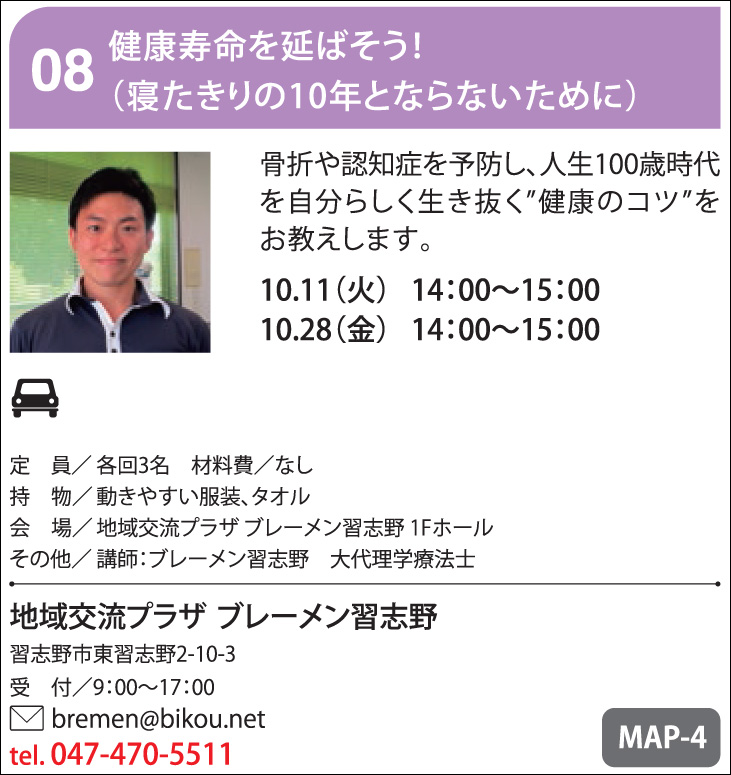 08:健康寿命を延ばそう!~寝たきりの10年とならないために~(地域交流プラザブレーメン習志野)