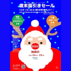 谷津遊路商店街歳末福引セール開催 2023年11月27日 谷津遊路商店街歳末福引セール ☆2023.12/1~25 福引券を集めよう!!☆ 参加店舗で3000円分のお食事・お買い物で福引券を1枚、500円券で補助券1枚差し上げます。(補助券は6枚で抽選1回) 特等・・・いいもの選べるカタログギフト 2本 1等・・・お買物券1万円分 4本 ☆12/24(日)・25(日)抽選会☆ 12:00~18:00 商店会事務所にて みなさまのご参加をお待ちしております! « 前の記事大久保商店街歳末スタンプラリー開催 » 次の記事12月10日(日)津田沼一丁目商店会フリーマーケット開催します。