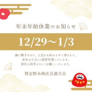 年末年始休業のお知らせ