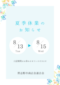 さて以下の期間、夏季休業として事務所を休業いたします。