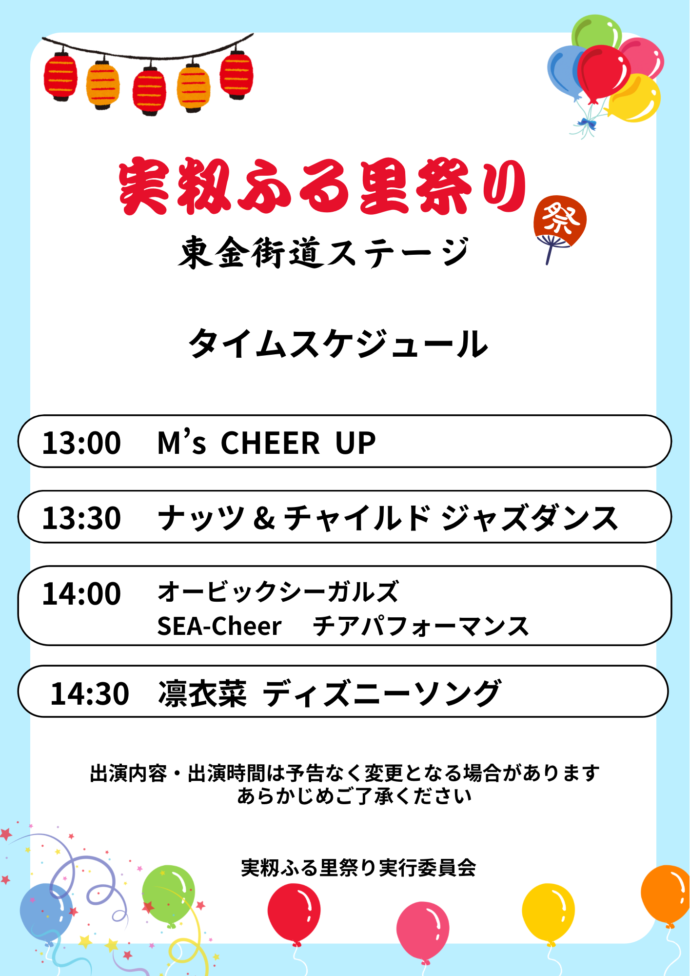※ 2025.10.31東金街道ステージタイムスケジュール追加しました