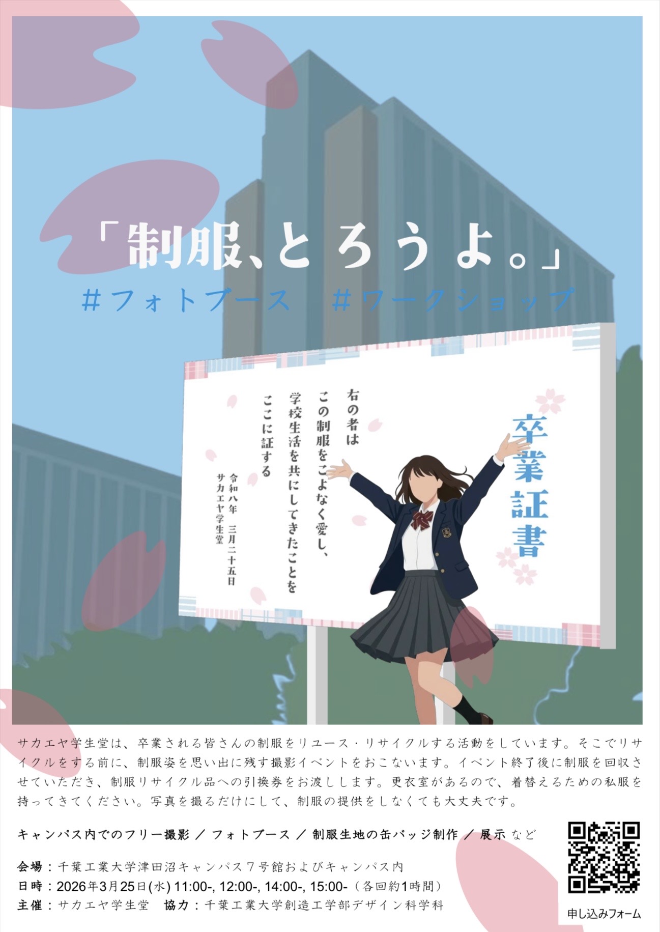 サカエヤ学生堂さんが制服姿を思い出に残す撮影イベントを開催します。