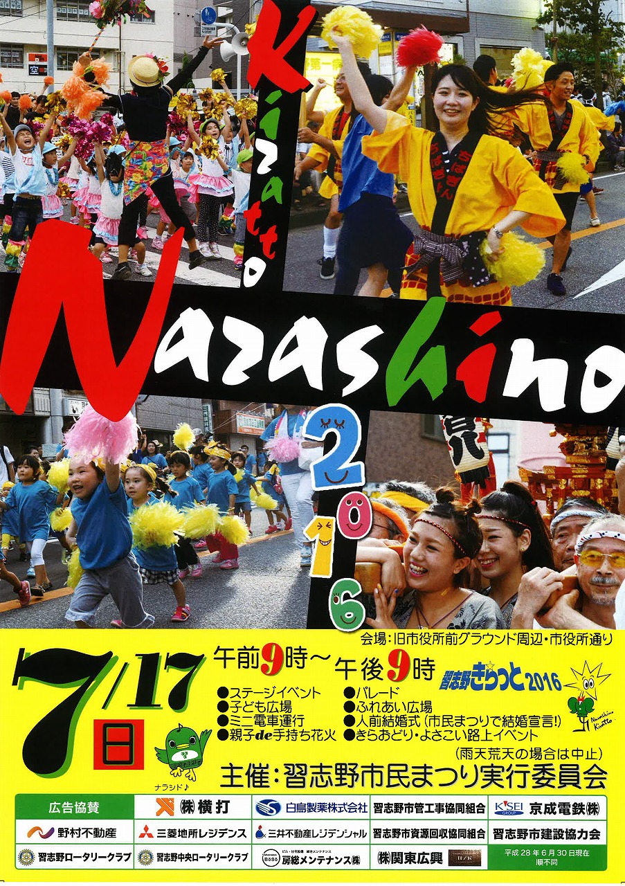2017.7.16 習志野きらっと2017 2017年7月14日 第24回市民まつり 習志野きらっと2017 2017.7.16(日)9:00~21:00 市庁舎敷地内及び市役所通り 習志野きらっと会場図・イベントスケジュール « 前の記事2017.7.22 津田沼ふれあい夏祭り » 次の記事2017.7.29/30 いきいき津田沼夏まつり