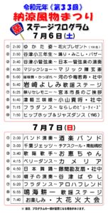 2019.7.6/7 納涼風物まつり 2019年7月7日 ≪第33回≫納涼風物まつり 7/7 11:00更新 本日7月7日(日)は予定通り開催いたします お誘いあわせの上、お越しください! 令和元年7月6日(土)・7日(日) 14:30~21:00 谷津サンプラザ(太陽の広場) ステージプログラム « 前の記事2019.7.14 習志野きらっと » 次の記事2019.7.27/28 いきいき津田沼夏まつり