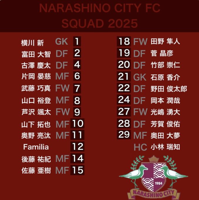 習志野市を背負い、市民に愛され誇れる地域愛着クラブチームになることをスローガンに掲げ、「習志野市からJリーグへ」を目標に活躍している、サッカーチームです。