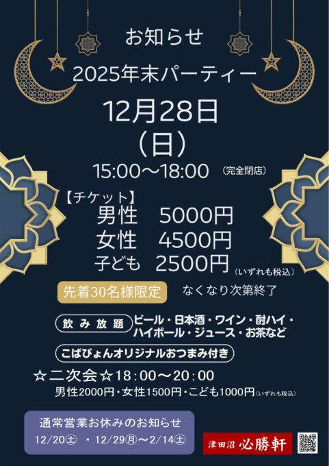 今年は【限定30枚】のチケット販売となりますので、お早めにどうぞ。